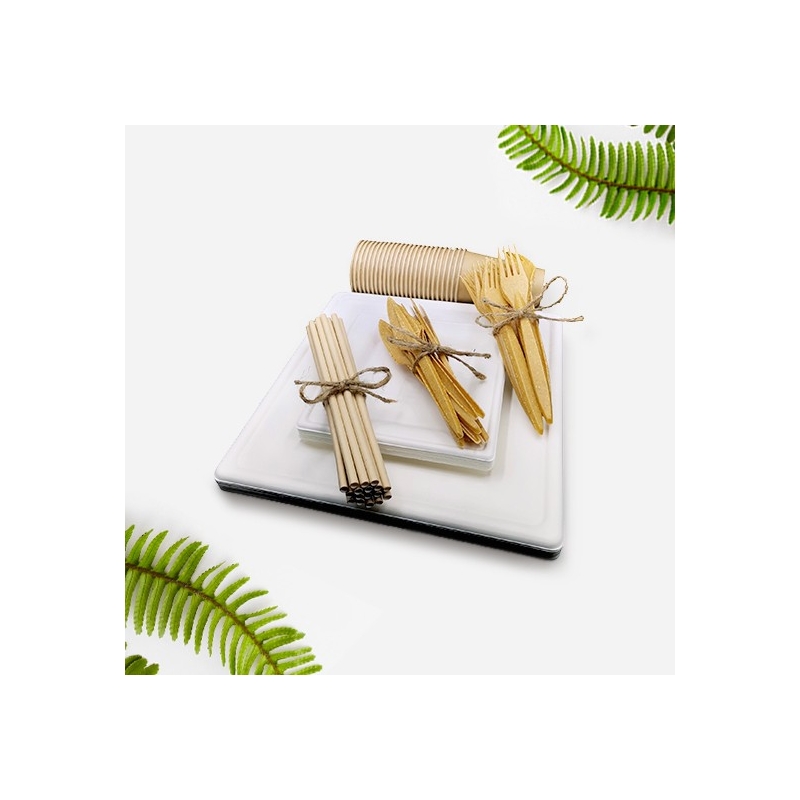 Zestaw z pulpy trzciny cukrowej dla 15 osób – kwadratowy