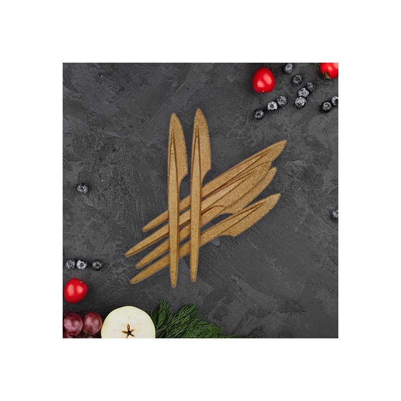 Noże z włókien drzewnych są produktami przeznaczonymi do wielokrotnego użytku. Wykonano je z kompozytu drewniano-polimerowego (WPC). Charakteryzują się wysoką zawartością materiału naturalnego, jakim jest drewno z certyfikatem FSC. Dzięki domieszce polimeru są wyjątkowo trwałe i odporne na wysokie temperatury (nawet 95°C).