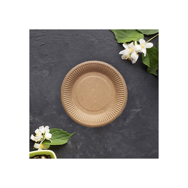 Okrągłe biodegradowalne talerze od Ecoserve w kolorze brązowym wspaniale sprawdzą się na imprezie oraz grillu. Wykonane są z wytrzymałego papieru kraft. Doskonale zastąpią plastikowe odpowiedniki. Papier kraft jest ekologiczny, szybko się rozkłada i nie szkodzi środowisku.