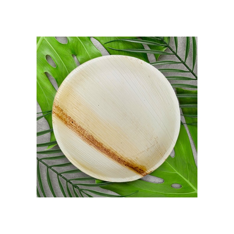 Talerze z liści palmowych o średnicy 18 cm, pakowane po 10, 25, 50 lub 100 sztuk.