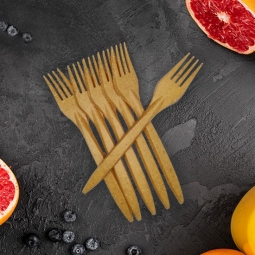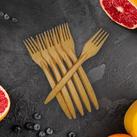 Widelce wykonano z surowca WPC, czyli kompozytu drewna i polimeru. Są produktem wielorazowym, można myć je w zmywarce bez obaw o pogorszenie się ich właściwości. Dzięki wysokiej odporności na temperatury zachowują sztywność nawet w 95°C. Widelce z włókien drzewnych charakteryzują się wysoką zawartością materiału naturalnego – drewna z certyfikatem FSC. Mogą zostać poddane recyklingowi.
